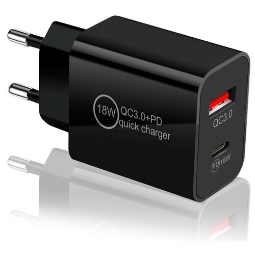 Зарядное устройство для быстрой зарядки PD20W 5V3A, USB, Type-c QC3.0, черное