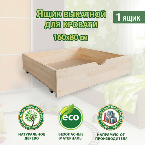 Ящик под кровать выкатной под покраску для детской кровати 160х80, натуральный цвет, 1 шт