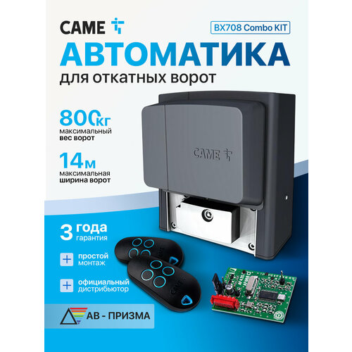 Комплект автоматики для откатных ворот CAME BX708AGS combo KIT. Привод, радиоприемник, два пульта.