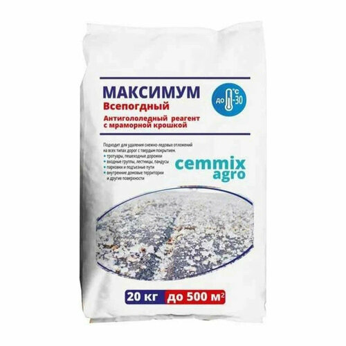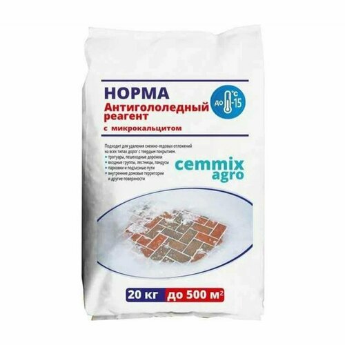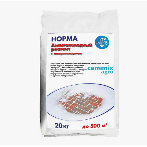 Цеммикс Реагент противогололедный Норма -15 С 20 кг с добавлением кальцита / CemMix Реагент противогололедный Норма -15 С 20 кг с добавлением кальцита
