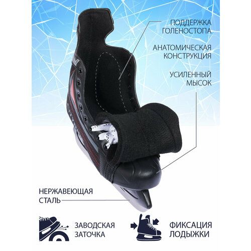 Хоккейные коньки ТМ City-Ride, лезвия нержавеющая сталь/заводская заточка, ботинки нейлон/ПВХ, чёрный/красный, 44(RUS43)