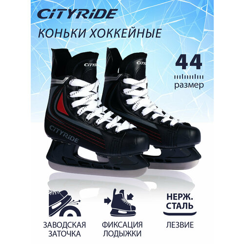 Хоккейные коньки ТМ City-Ride, лезвия нержавеющая сталь/заводская заточка, ботинки нейлон/ПВХ, чёрный/красный, 45(RUS44)