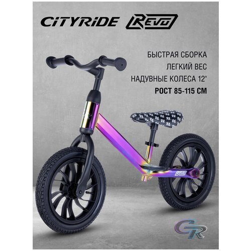 Беговел CITYRIDE REVO, эргономичное сиденье, рама сталь, регулировка руля/сиденья, пластиковые литые диски, колеса резиновые 12 дюймов