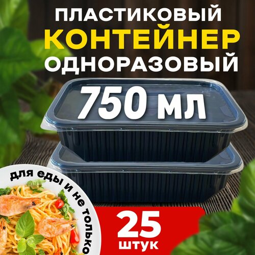 Контейнеры одноразовые с крышкой для еды 750 мл 25 шт. черные