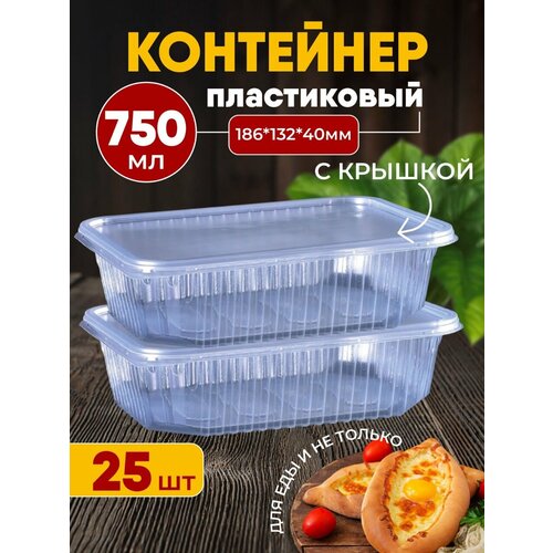 Контейнеры одноразовые с крышкой для еды 750 мл 25 шт