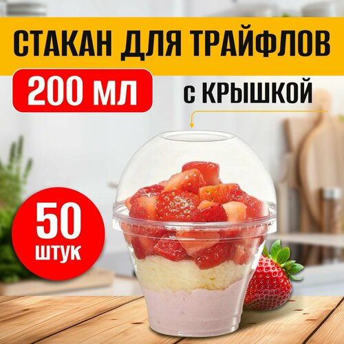 Стаканчики для трайфлов с крышкой без отверстия 200 мл 50 шт