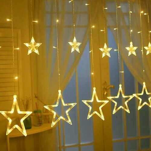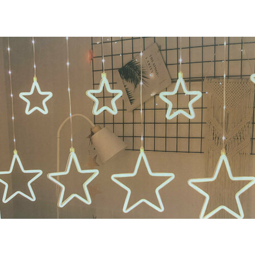 Гирлянда занавес Бахрома тепло-белый неон звезды