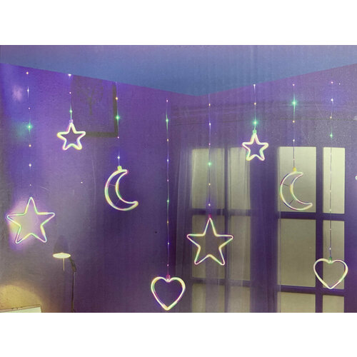 Гирлянда новогодняя Луна и Звезды 3 х 0.7 м цветная