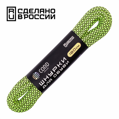 Шнурки "CORD" 180см (Черный+ЗеленыйНеон)