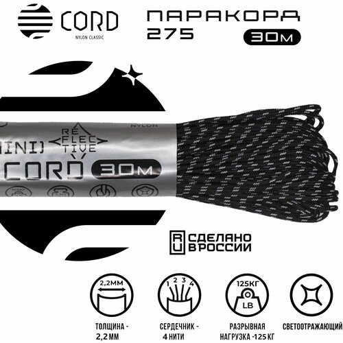 Паракорд 275 CORD RUS 30м 2мм светоотражающий BLACK