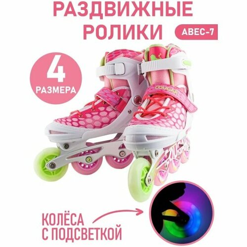 Роликовые коньки COUGAR MZS767 колеса со светом, размер L(38-41), розовые