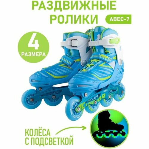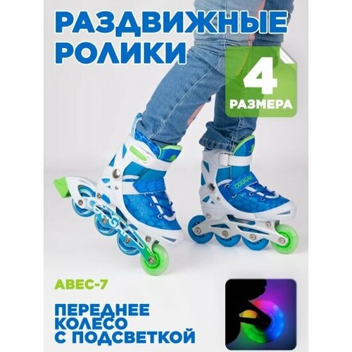 Роликовые коньки COUGAR MZS767 колеса со светом, размер S(30-33), голубые
