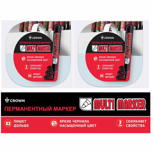 Маркер перманентный двухсторонний "Multi Marker Twin" 2мм/1мм пулевидный черн. Crown Б0048242