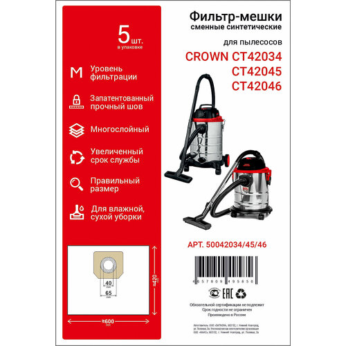 Пылесос строительный 2000Вт/ 80л CROWN CT42029 коробка