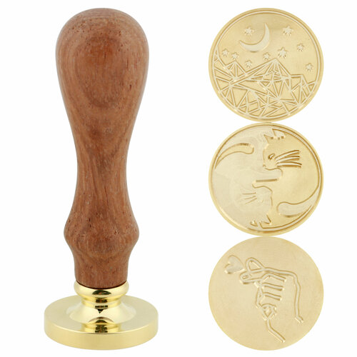 Набор штамп и 2 доп. насадки для сургучной печати Прикольный микс, 3 см, Бежевый, 1 шт.