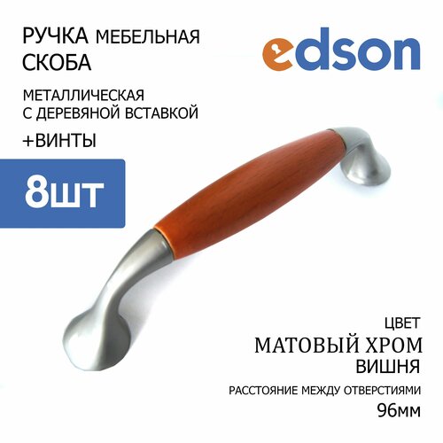 Ручка для мебели EDSON, 96 мм, вишня/матовый хром, 8 шт.