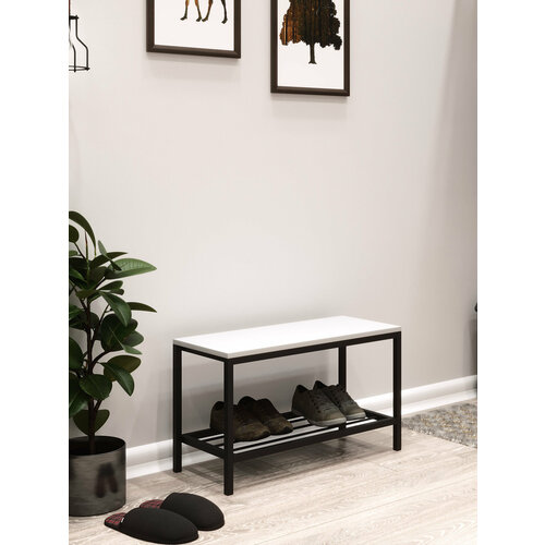 Банкетка CORRIDO-410NB с белой полкой и черным каркасом
