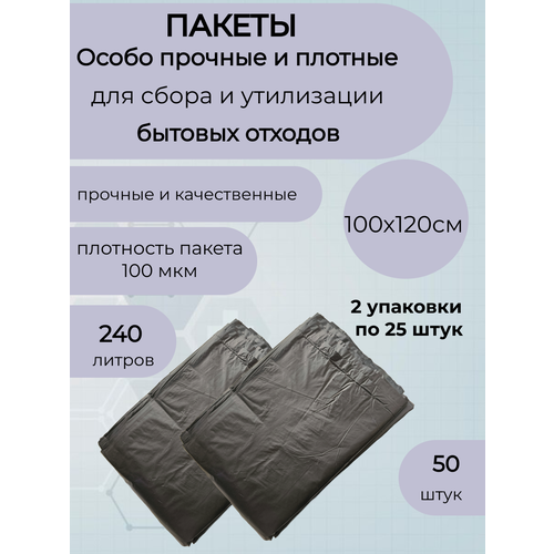 Пакеты и мешки для мусора прочные 100мкм. 100х120см.-50шт.