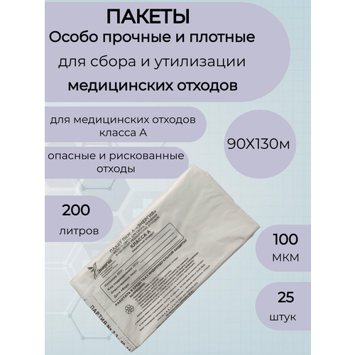 Пакеты для медицинских отходов класса А,90*130,100мкм. белые-25шт.
