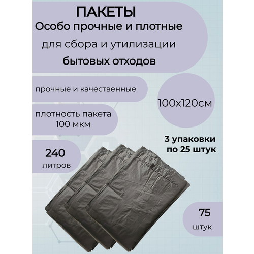 Пакеты и мешки для мусора прочные 100мкм. 100х120см.-75шт.