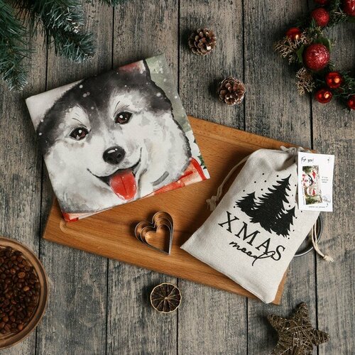 Набор в мешочке Этель Christmas mood: полотенце 40х73 см, формочки для запекания - 3 шт.