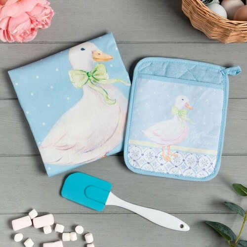 Этель Набор подарочный "Со светлой пасхой" прихватка-карман, полотенце 40х73, 100% хлопок, лопатка силиконовая