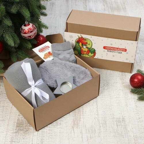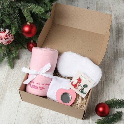 Набор подарочный «С новым годом» (плед, носки, маска для сна, термостакан) 100041645195