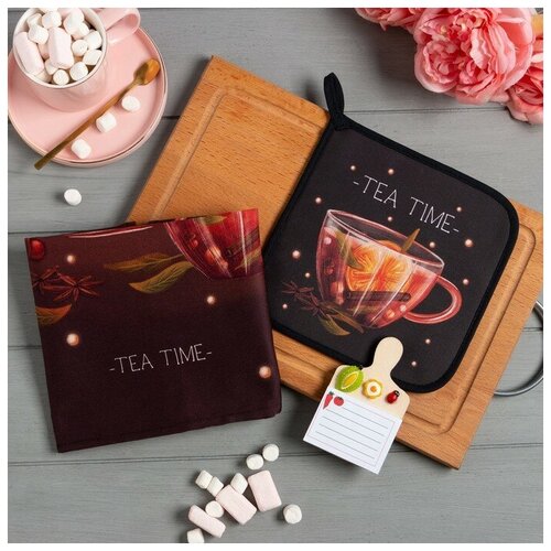 Этель Набор подарочный "Время для чая" полотенце 40х73см, прихватка 19х19см, магнит 11х7см