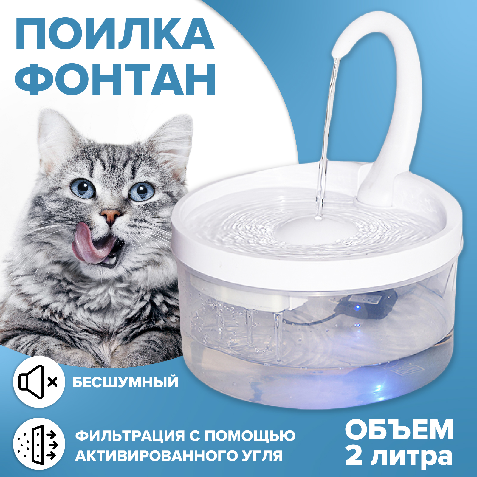 Поилка фонтан Evo Beauty автоматическая с фильтром для животных, для кошек и собак petfountain