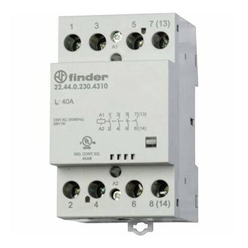 Контактор модульный 4NO 40А контакты AgSnO2 230В АС/DC ширина 53.5мм IP20 мех. индикатор 224402304310 / 22.44.0.230.4310 Finder