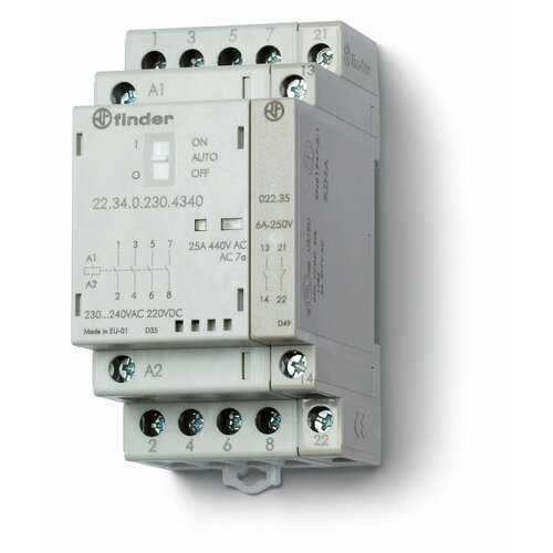 Модульный контактор_ 2NO+2NC 25А_ контакты AgSnO2_ катушка 230В АСDC_ ширина 35мм_ степень з, FINDER 223402304620 (1 шт.)