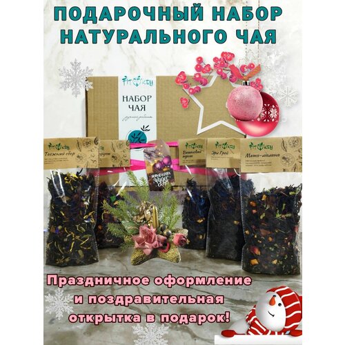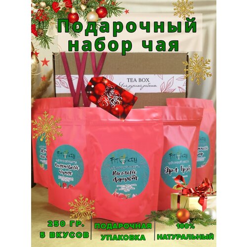 Набор чая подарочный. Чай черный листовой зеленый с кусочками фруктов. Подарок на новый год