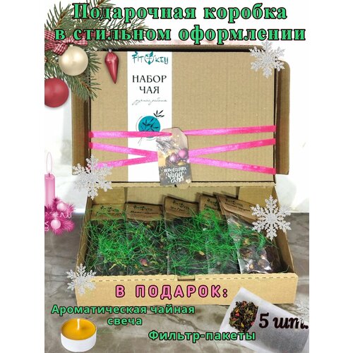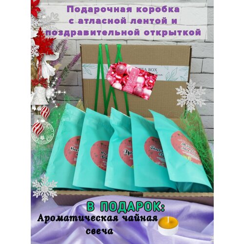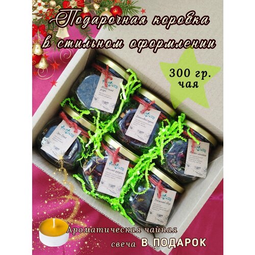 Новогодние подарки. Подарочный набор чая. Черный чай листовой черный зеленый, свеча, фильтр-пакеты.