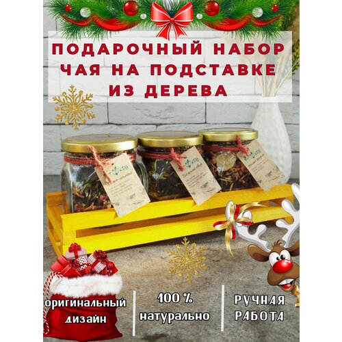 Набор чая подарочный. Листовой черный зеленый на подставке из дерева. Подарок на новый год