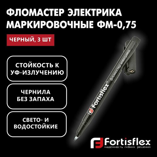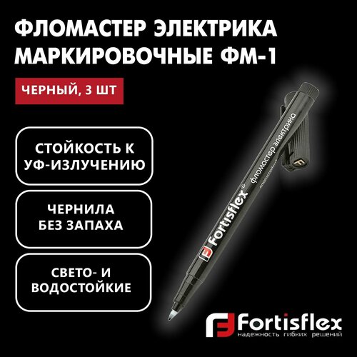 Фломастеры электрика маркировочные Fortisflex ФМ-1 черный, маркер перманентный по пластику, металлу, дереву, 3 шт
