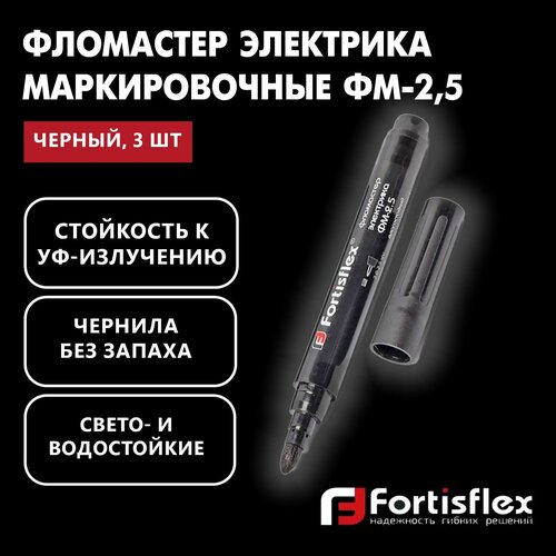 Фломастеры электрика маркировочные Fortisflex ФМ-2,5, маркер перманентный по пластику, металлу, дереву, 3 шт