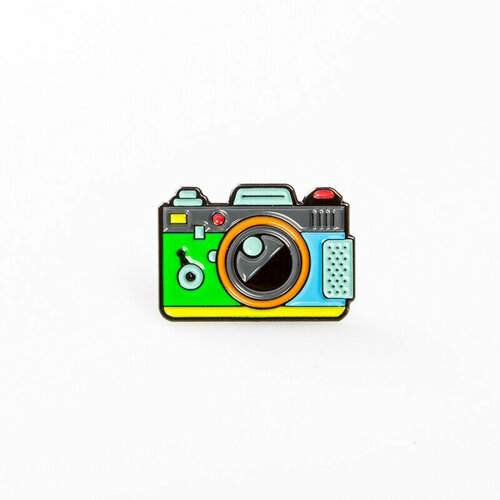 Значок фотоаппарат зеленый и голубой Fotokvant PRM-004
