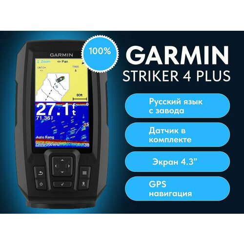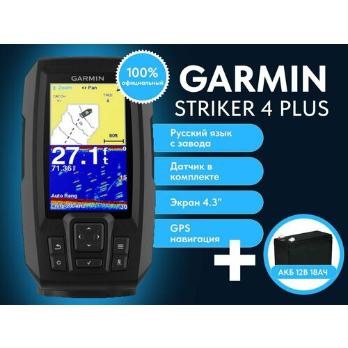 Эхолот Garmin Striker Plus 4 с датчиком и АКБ Русский