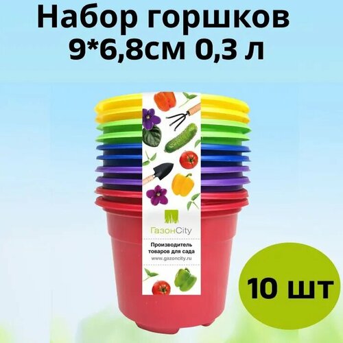 Набор горшков ГазонCity Color 6.8см h6.8см v0.3л разноцветный, 10шт