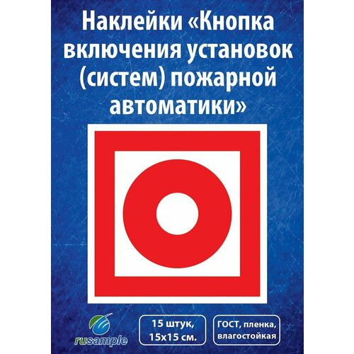 Наклейка-знак "Кнопка включения установок (систем) пожарной автоматики" ГОСТ F10, 15х15 см, 15 шт.