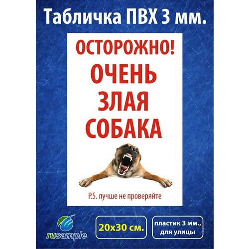 Табличка из пластика 3 мм. "Осторожно! Злая собака", 20х30 см.