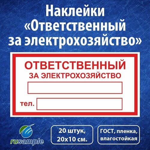 Наклейки "Ответственный за электрохозяйство" ГОСТ, 20х10 см, 20 штук