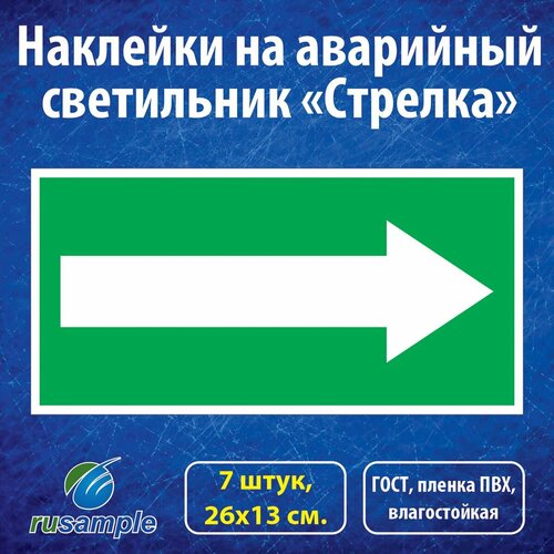 Наклейки "Стрелка" 26х13 см. на аварийные светильники, 7 штук