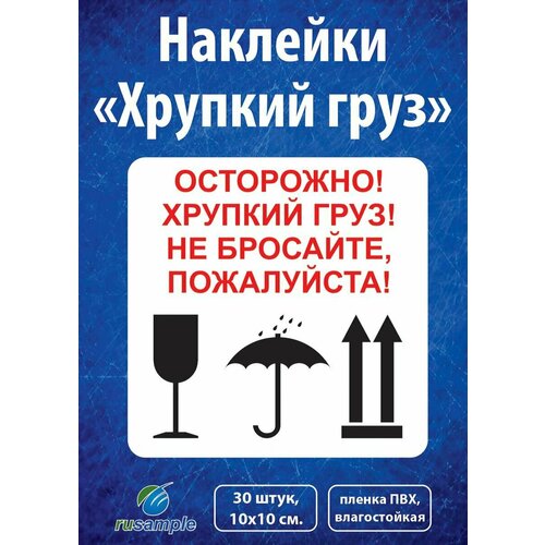 Наклейки "Хрупкий груз", 10х10 см, 30 шт.