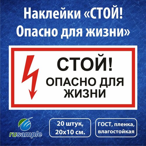 Наклейка "Стой! Опасно для жизни", 20х10 см, 20 шт.