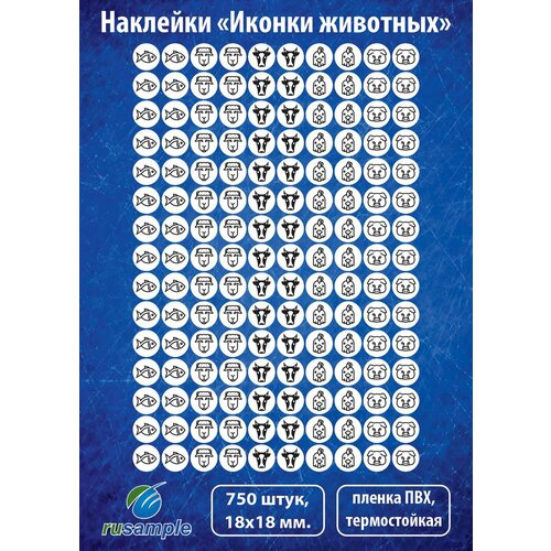 Наклейка "Иконки животных", 750 штук, диаметр 18 мм.