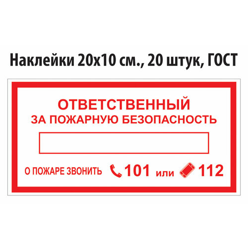 Наклейки "Ответственный за пожарную безопасность" ГОСТ, 20х10 см, 20 штук