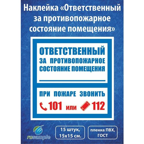 Наклейка "Ответственный за противопожарное состояние помещения" ГОСТ, 15х15 см, 15 штук