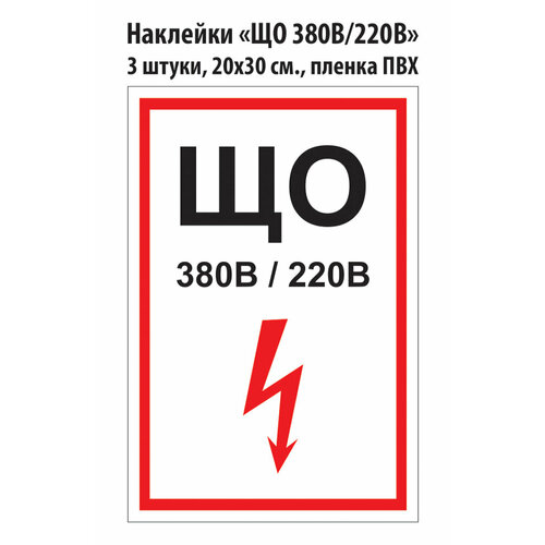 Наклейка "ЩО 380В / 220В" ГОСТ 20х30 см, 3 шт.