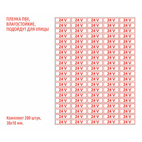 Набор наклеек "напряжение 24V (24 вольта)", 3х1 см, 200 шт.